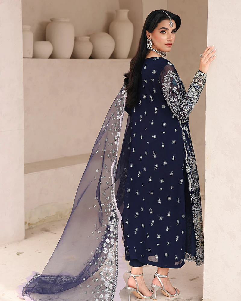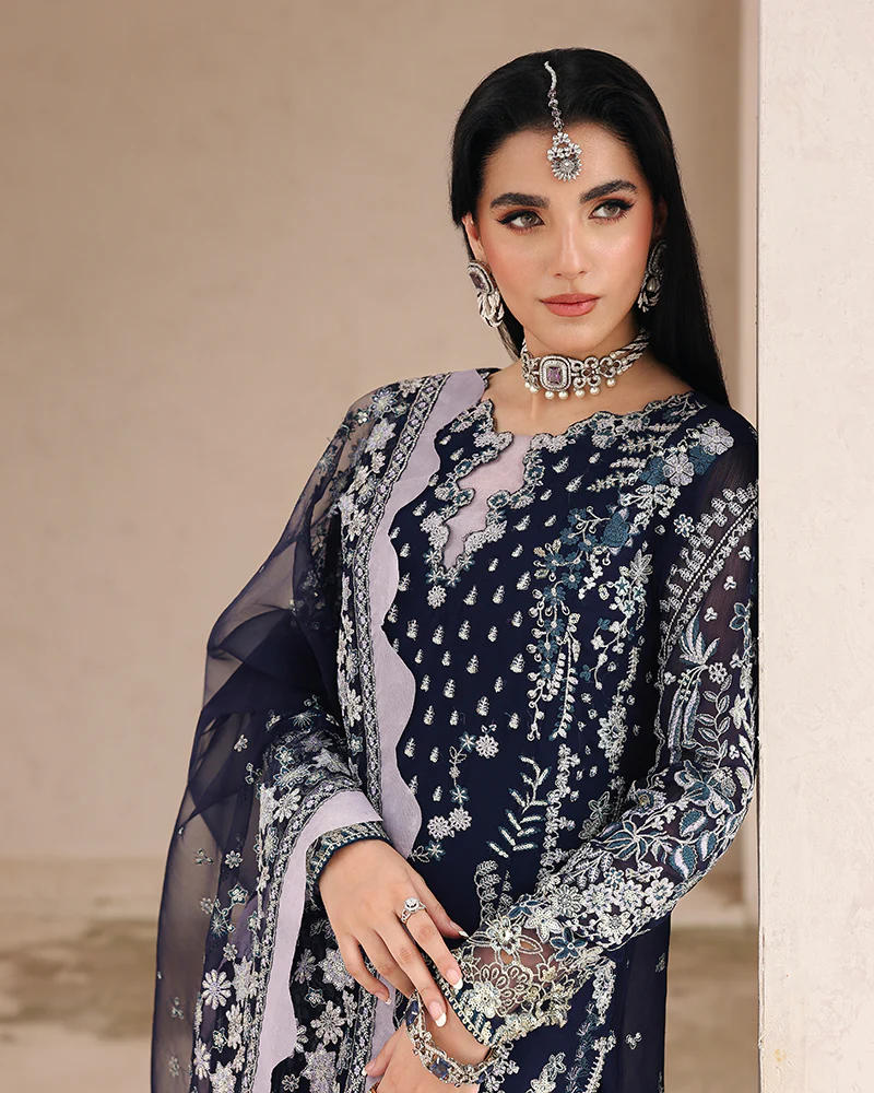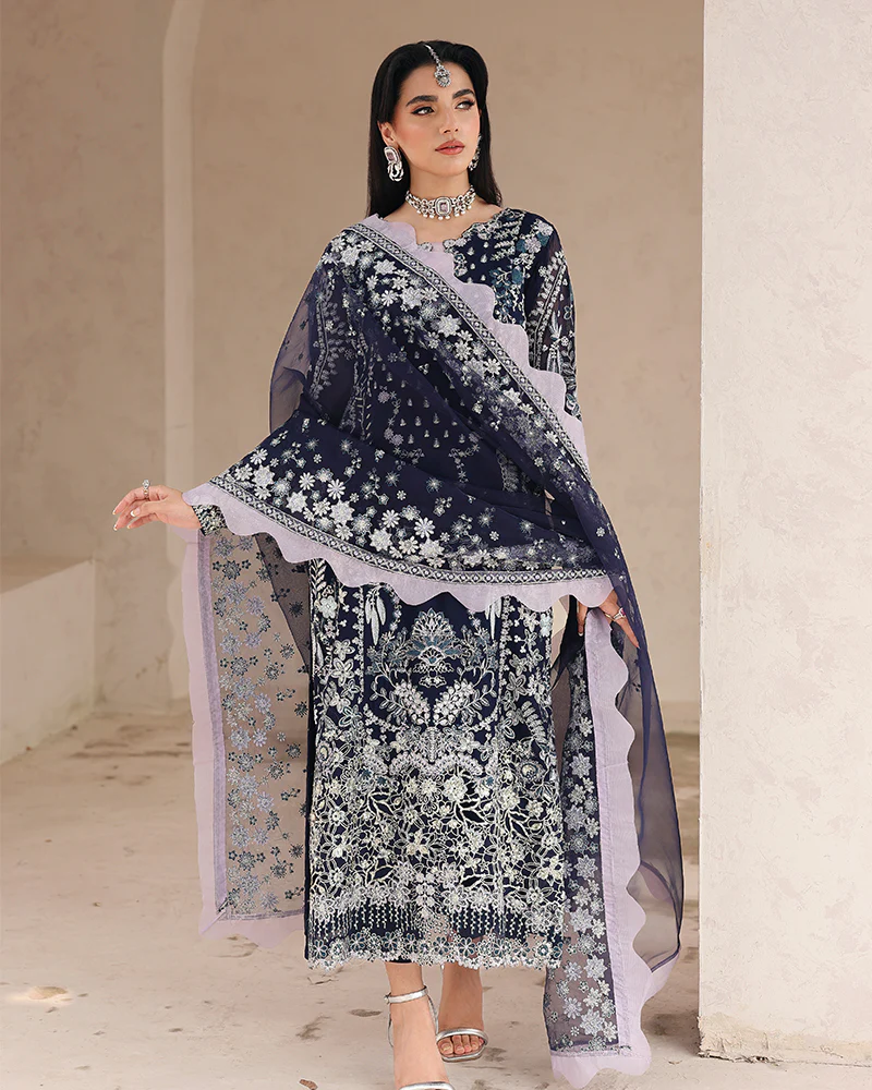 Organza dupatta embellished with intricate sequin embroidery and scalloped borders