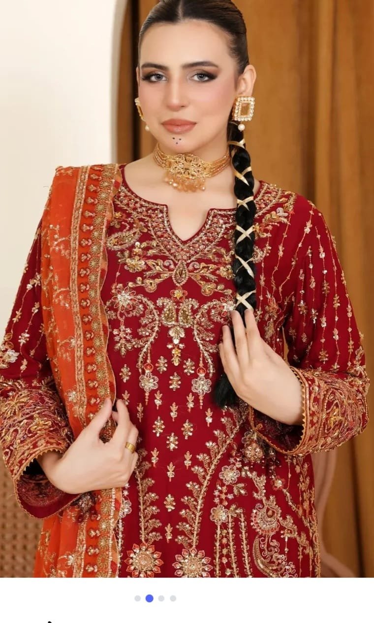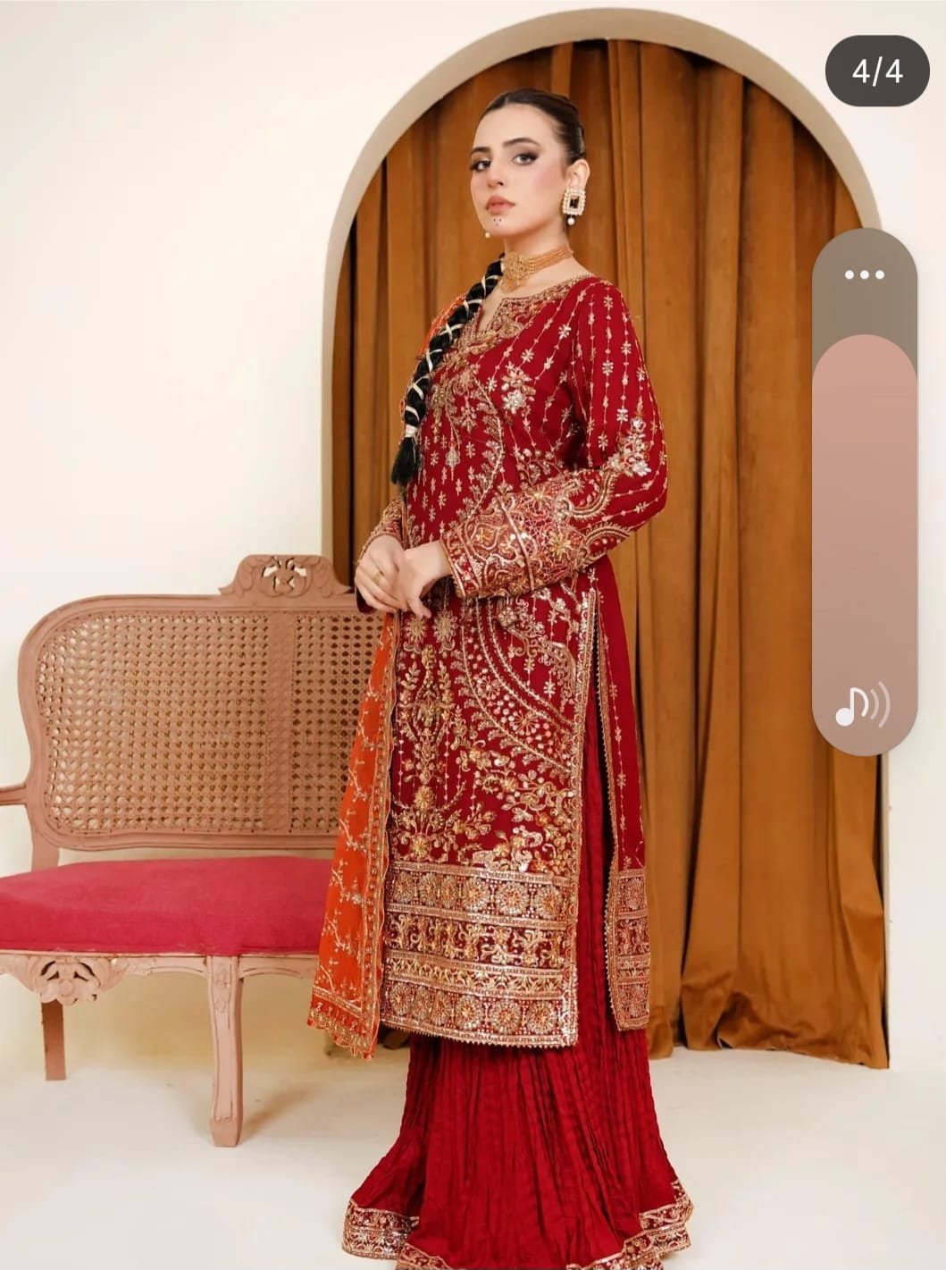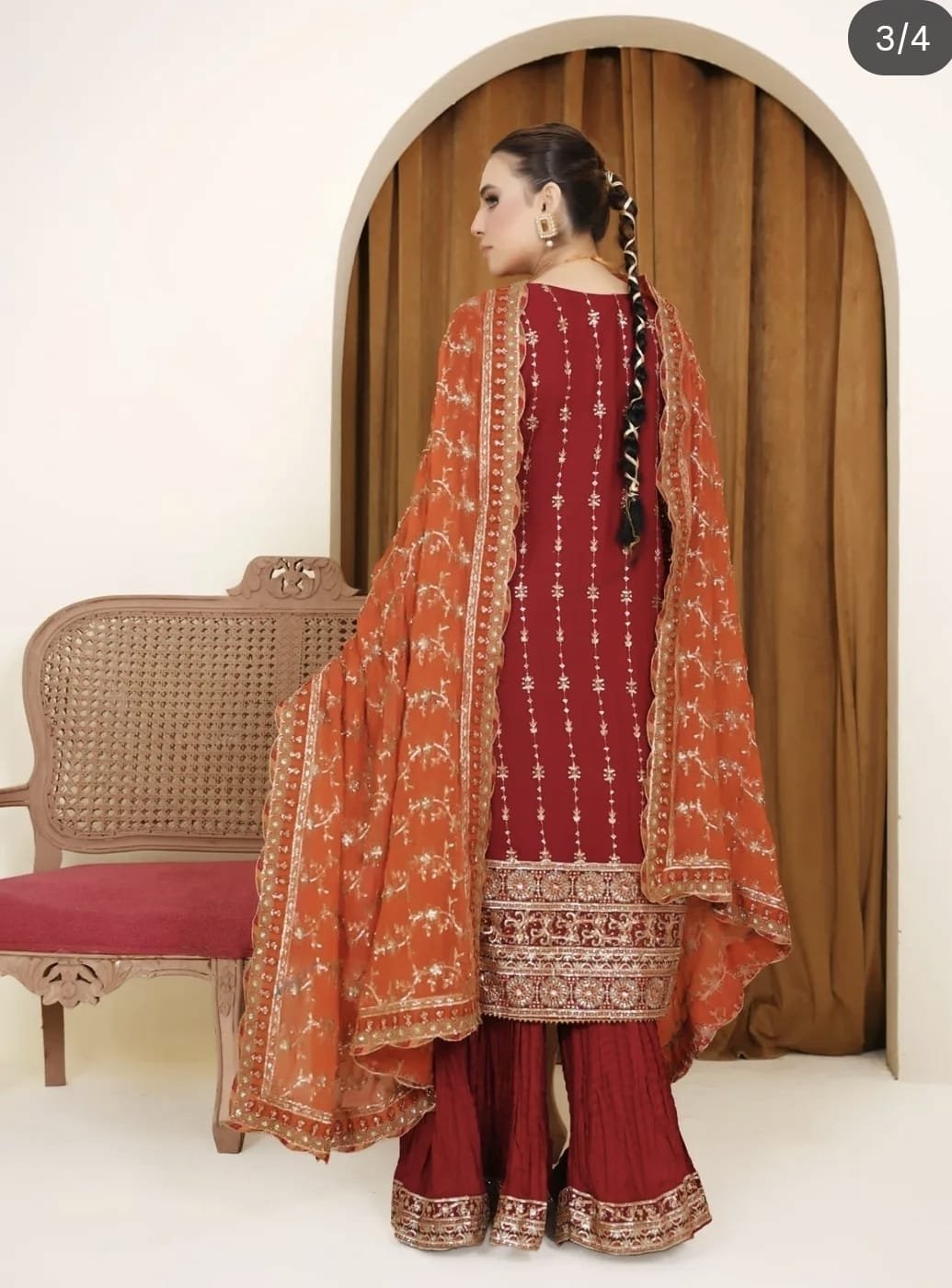 1. This stylish ensemble features a chiffon shirt paired with a matching chiffon gharara, offering an elegant and timeless look. The shirt, with a length ranging from 42 to 46 inches, provides a flattering fit, while the sharara adds a flowy and graceful touch. A coordinating chiffon dupatta completes the outfit, enhancing its overall sophistication. Weighing 1.500 kg, this lightweight yet chic attire ensures comfort and style, making it an ideal choice for special occasions and formal events.