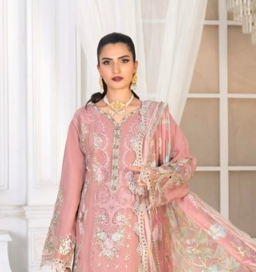 This elegant 3-piece ensemble is crafted for style and comfort. It features a Chiffon straight shirt paired with Grip plazo trousers, creating a graceful silhouette that’s ideal for both formal and semi-formal occasions. The outfit is elevated with a beautifully Digital Printed dupatta, adding a vibrant touch to the overall look. With a shirt length of 46 to 48 inches and a total weight of 1.050 kg, this outfit ensures lightweight elegance and ease of wear.