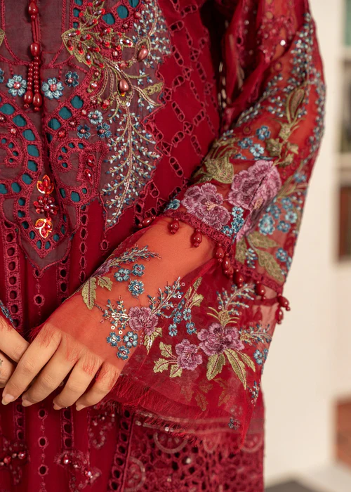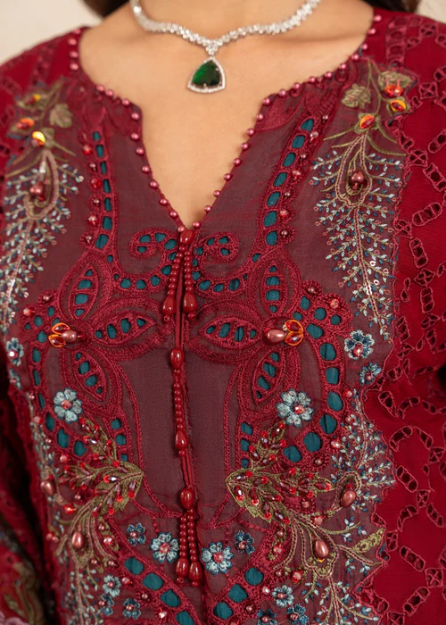 1-Elevate your style with our exquisite Chiffon Chickenkari Sequin Embroidered Shirt, adorned with hand embellishments, and delicate laces. 2-Complete your look with our Net Sequin Embroidered Embossed Dupatta 3-Pair the ensemble with our Grip Silk Trouser for a complete and stylish outfit that exudes luxury and sophistication.
