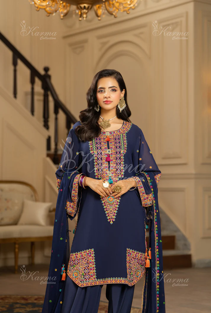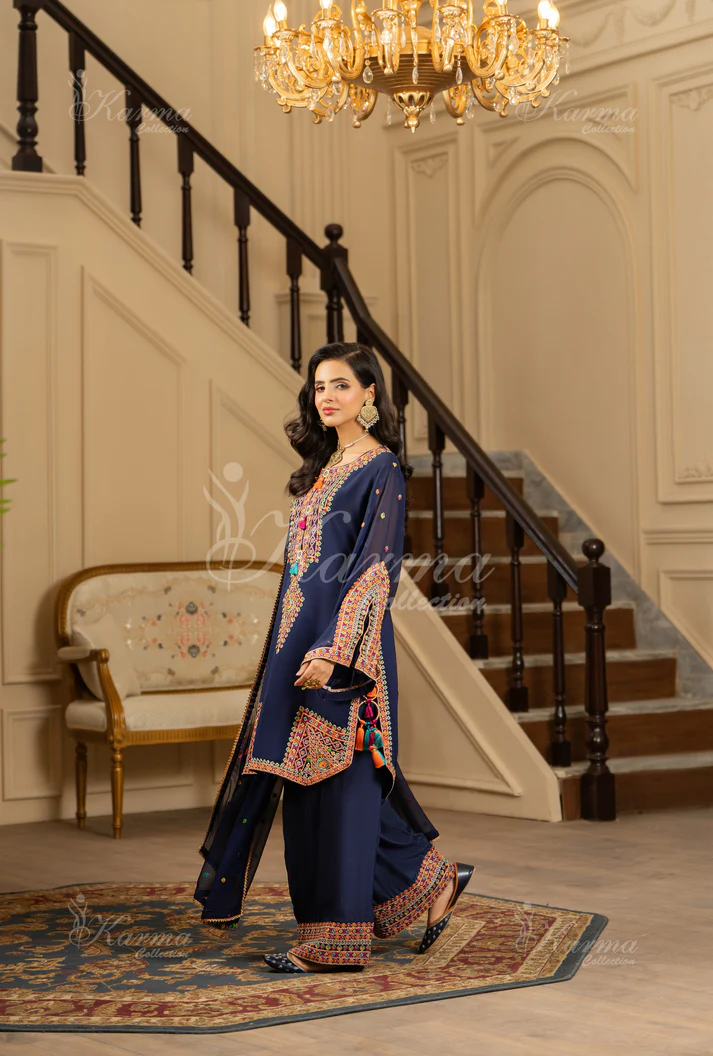 Georgetta chiffon embroidered shirt with tussels on chalk and dori on sleeves
