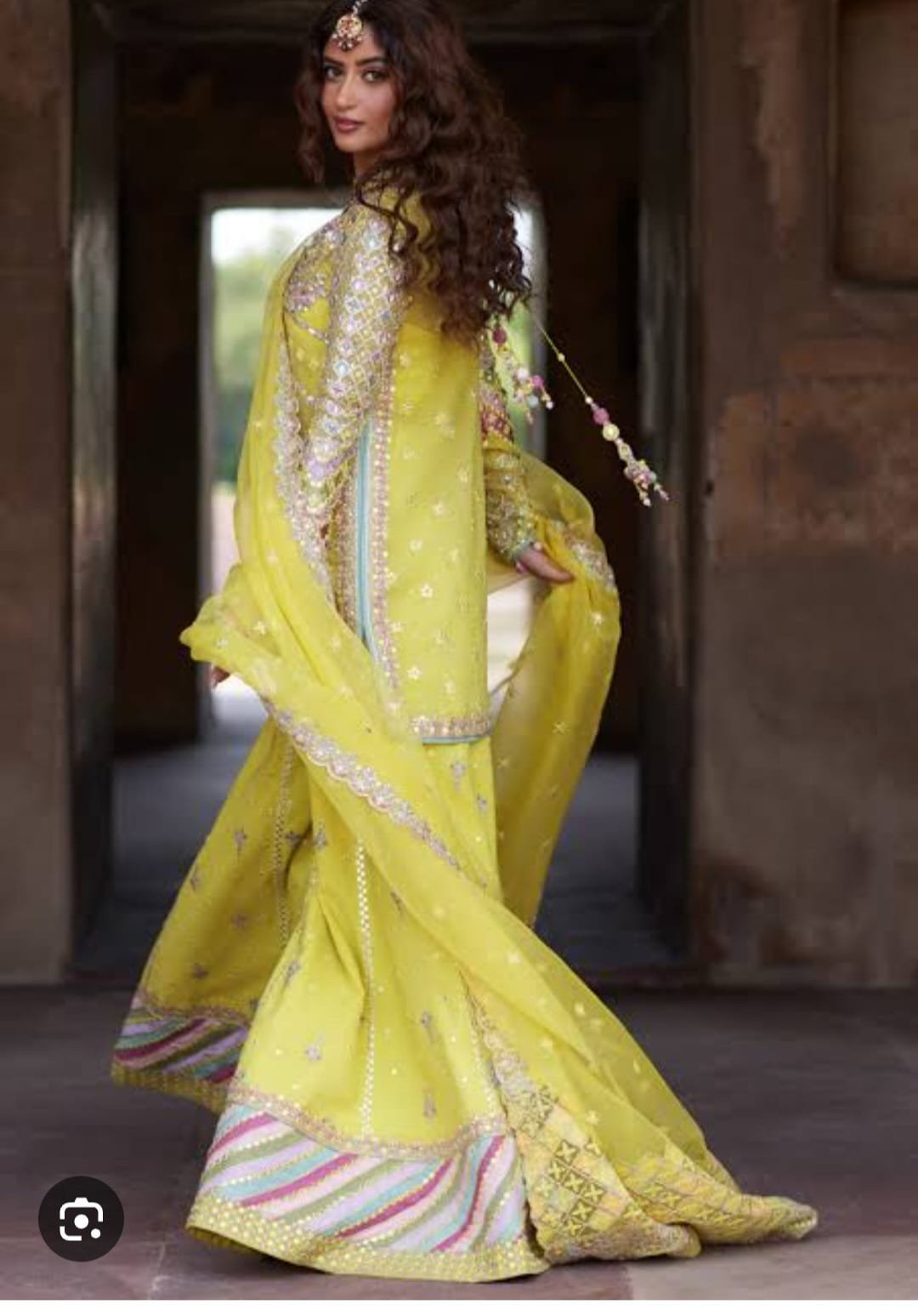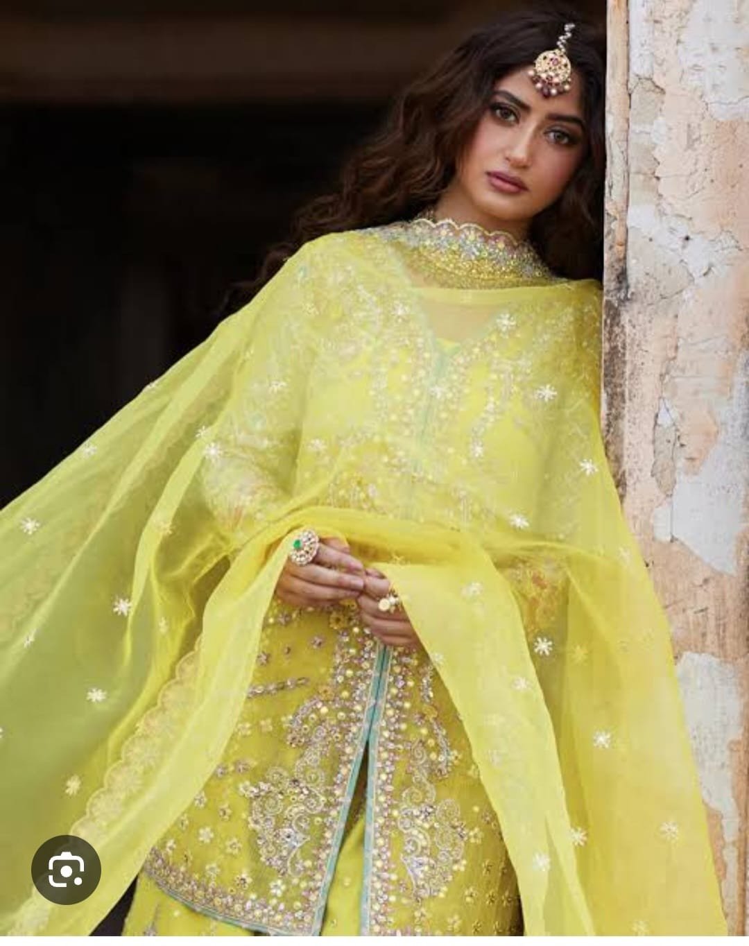 This graceful 3-piece outfit features a net shirt designed in a straight cut style, creating an elegant and contemporary silhouette. Paired with a stylish plazzo made from grip fabric, the ensemble ensures comfort without compromising on style. The look is completed with a flowing organza dupatta, adding a soft and ethereal touch. With a shirt length of 34 to 36 inches and a weight of 1.05 KG, this outfit is ideal for festive occasions, evening events, or formal gatherings, combining lightness with luxurious detailing.