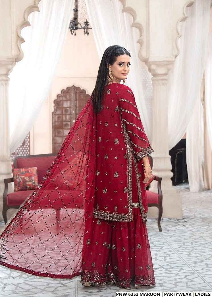 This beautifully designed outfit features a chiffon shirt, chiffon plazo trousers, and a matching chiffon dupatta, creating a cohesive and graceful look. Styled in a straight shirt with plazo design, it offers both sophistication and comfort. The shirt length of 38/40 inches is tailored to flatter various body types, while the total weight of 0.850 kg ensures a light and easy-to-wear ensemble, ideal for day or evening wear.