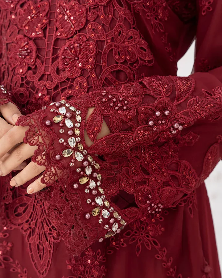 Additional Description: “1-exquisite chiffon chikankari shirt, Adorned with intricate cutdana sequins and crystal embroidery hand adda work on the sleeves and delicate 3D floral flower embellishment 2-Stunning shirt is our chiffon embroidered dupatta, featuring an elegant scalp design 3-Paired perfectly with soft viscose trouser”