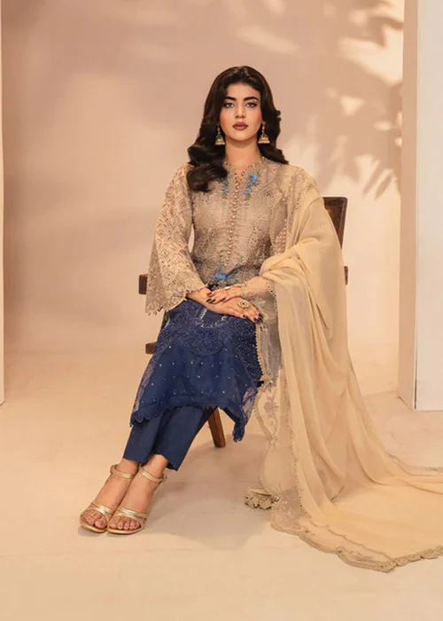 2-Chiffon dupatta adorned with intricate embroidery, lace accents, and pearl embellishments.