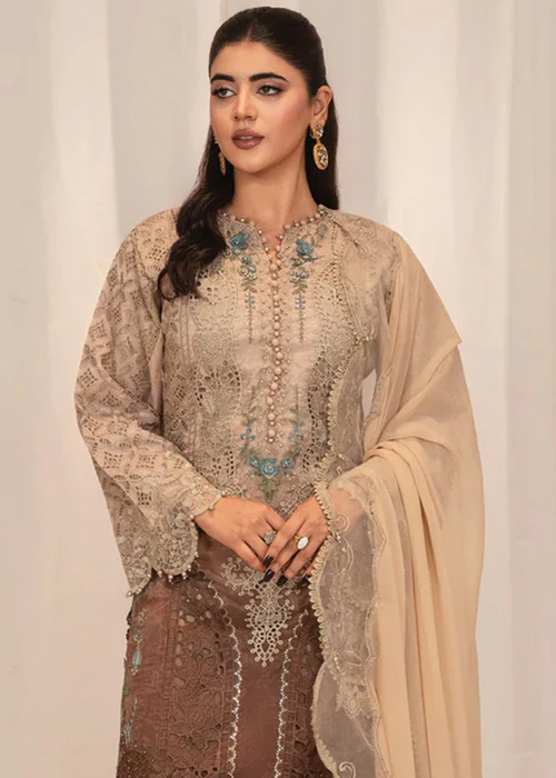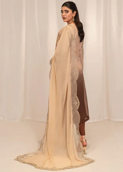2-Chiffon dupatta adorned with intricate embroidery, lace accents, and pearl embellishments.
