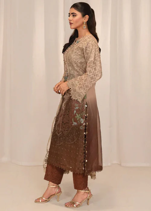 1-Organza chikankari shirt embellished with sequin embroidery, 3D floral pearls, and lace detailing.