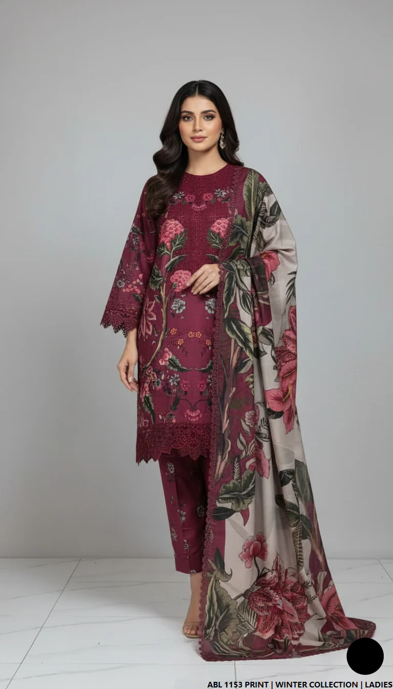 This beautiful outfit is crafted from premium Khaddar fabric for both the shirt and trouser, offering warmth, comfort, and durability perfect for winter wear. The classic straight-shirt style enhances elegance, making it suitable for any casual or semi-formal occasion. Paired with a soft and cozy Wool Shawl dupatta, the ensemble provides a refined and sophisticated winter look. With a shirt length of 47/49 inches and a total weight of 0.800 kg, this outfit blends style with practicality.