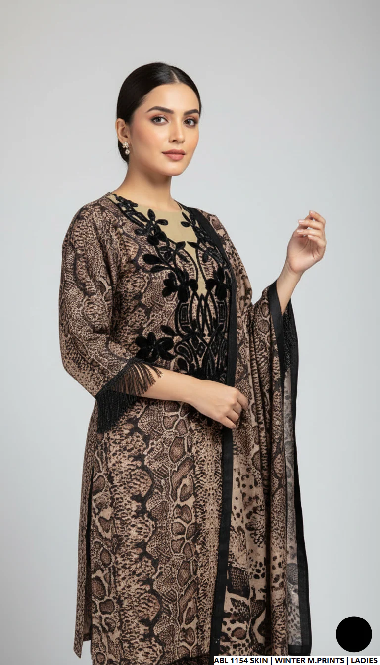 This elegant Khaddar 3-piece outfit is crafted for both comfort and sophistication during the winter season. Featuring a straight Khaddar shirt paired with matching Khaddar trousers, it provides a classic and refined look. The wool shawl dupatta adds warmth and a touch of luxury, making it ideal for colder days. With a shirt length of 47/49 inches and a total weight of 0.800 kg, this outfit perfectly balances style, comfort, and durability — a versatile choice for casual or semi-formal winter occasions.