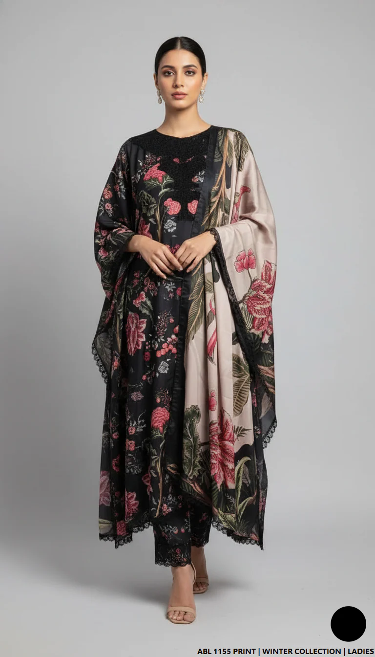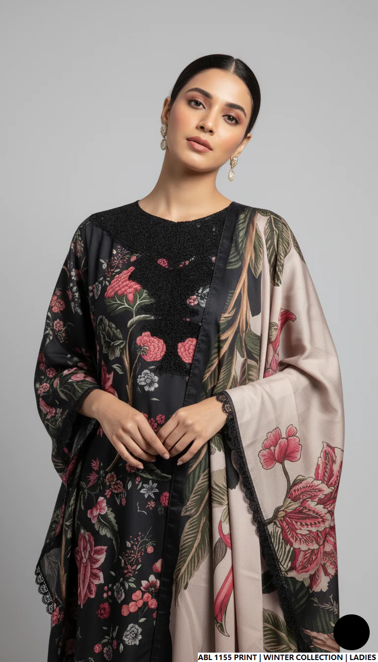 This elegant outfit is crafted with premium Khaddar fabric for both the shirt and trouser, offering comfort, warmth, and durability. The ensemble features a stylish Kaftan Cap design paired with a soft and luxurious Wool Shawl dupatta, adding sophistication to the overall look. With a shirt length of 48/50 inches and a total weight of 0.800 kg, this outfit is perfect for winter wear, blending tradition with modern fashion.