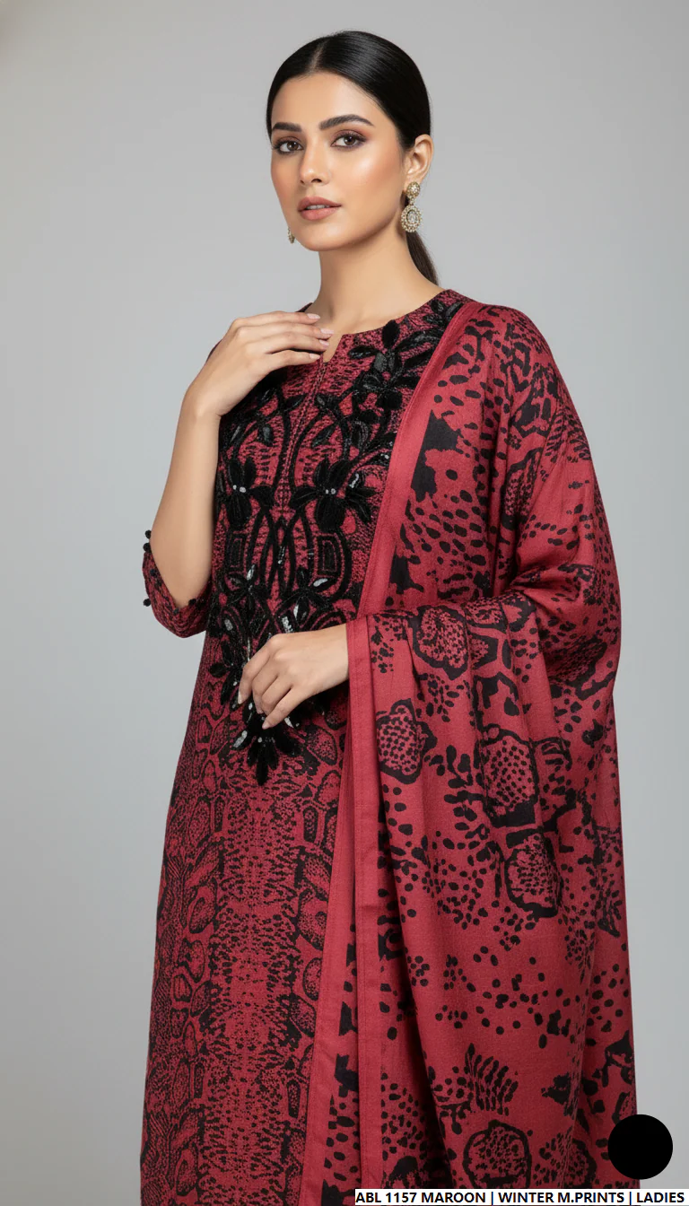 This elegant Khaddar 3-piece suit is the perfect addition to your winter wardrobe. Crafted from premium Khaddar fabric, the outfit features a straight shirt design paired with a matching Khaddar trouser for a refined, timeless look. The wool shawl dupatta adds warmth and a luxurious touch, making it ideal for chilly days. With a shirt length of 46/48 inches and a total weight of 0.800 kg, this ensemble offers both comfort and sophistication for everyday wear or special winter gatherings.
