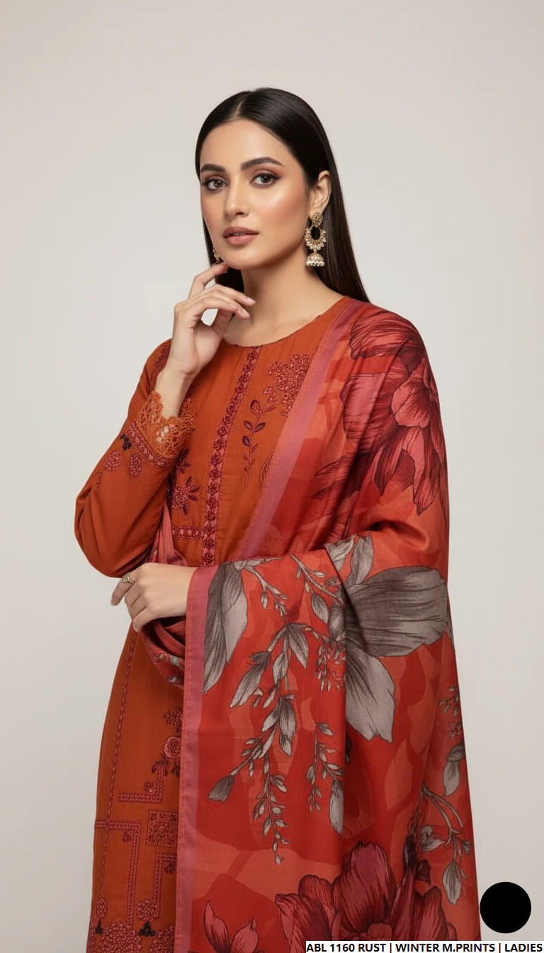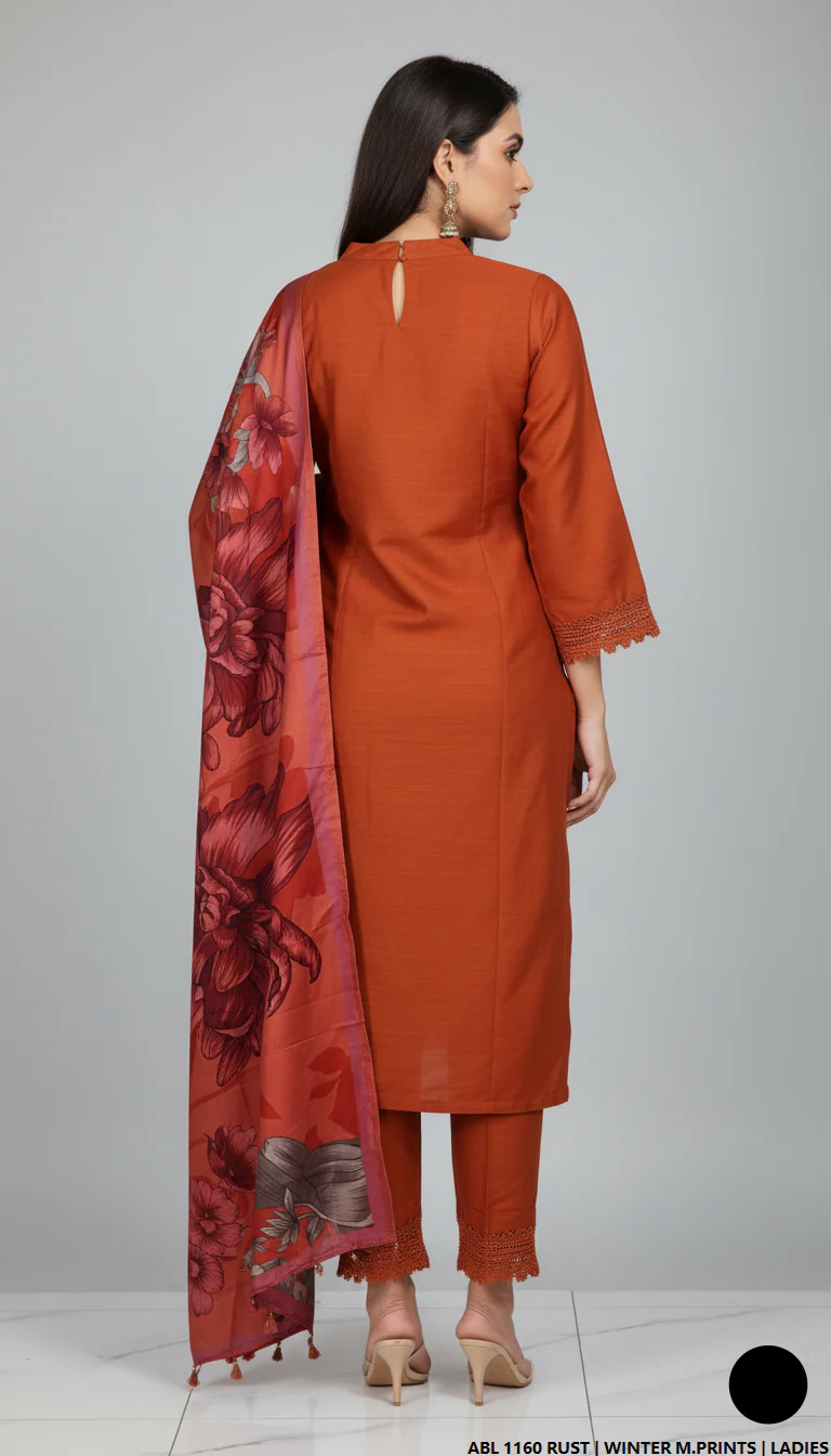 This elegant Khaddar 3-piece outfit is designed to offer both style and comfort during the winter season. The ensemble includes a straight Khaddar shirt paired with a matching Khaddar trouser, giving a refined and classic appearance. The outfit is completed with a soft wool shawl dupatta, providing extra warmth and sophistication for cooler days. With a shirt length of 44/46 inches and a total weight of 0.750 kg, this set is a perfect balance of comfort, quality, and timeless winter fashion — ideal for both casual and semi-formal wear.
