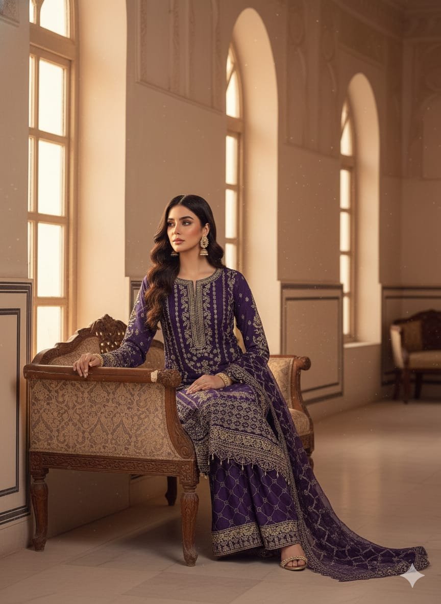 3. Dupatta Fabric :  Shiffon Stuff Embroided