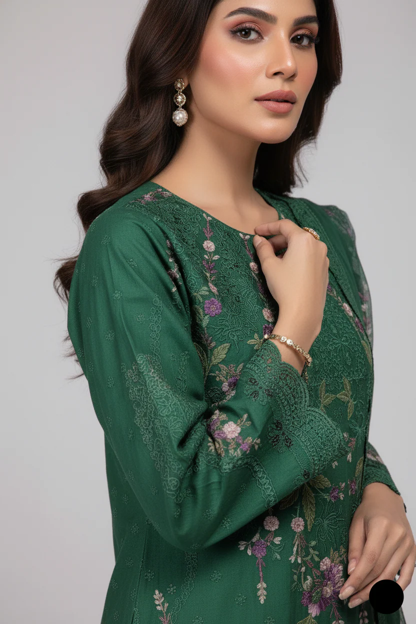 This elegant 3-piece outfit showcases a straight shirt with trousers, both crafted from high-quality Katan silk for a smooth, luxurious feel. The shirt length of 46 to 48 inches offers a balanced silhouette, perfect for both formal and semi-formal settings. A digital printed chiffon dupatta adds a modern, colorful contrast to the overall look. Designed for comfort without sacrificing style, the outfit weighs just 0.850 kg, making it an ideal choice for long events or festive occasions.