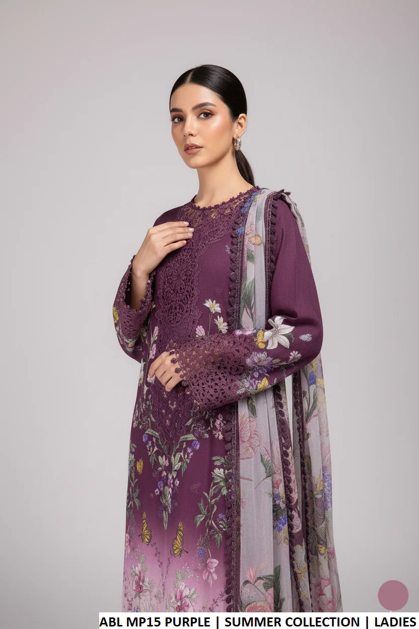 This elegant outfit features a stylish Polly Lawn shirt paired with a matching Polly Lawn trouser and a beautiful digital print silk dupatta. The A-line shirt design creates a graceful and flattering silhouette, making it perfect for casual wear as well as semi-formal occasions. With a shirt length ranging from 44 to 46 inches and a comfortable weight of 0.600 KG, this outfit offers a perfect blend of style, comfort, and modern fashion.