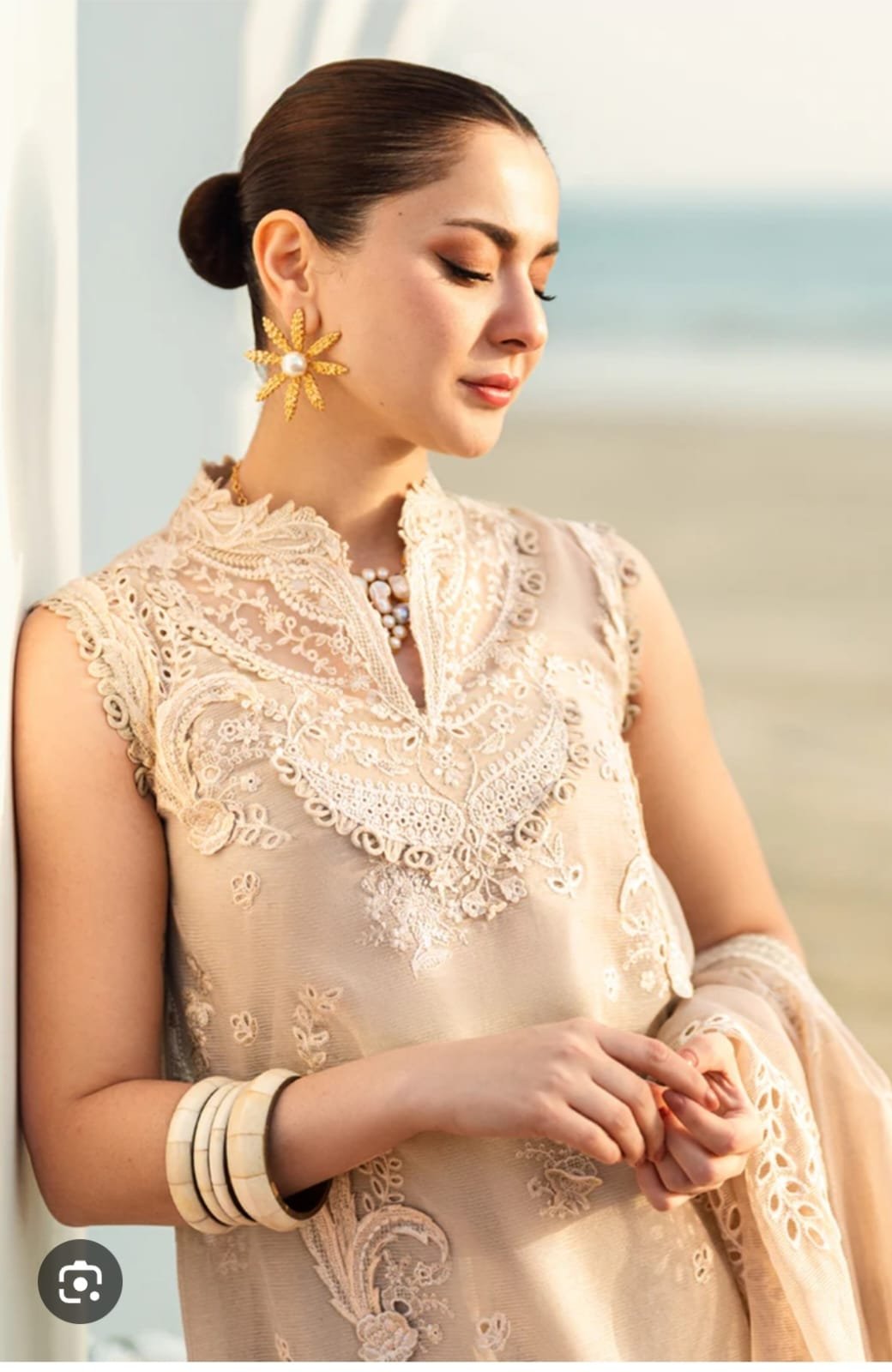 Elevate your formal wardrobe with this exquisite A-line shirt outfit, crafted from premium khaddi lawn shirt and cotton trousers. The rich texture of Khaddi offers a luxurious feel and an elegant fall. The set is paired with a beautifully textured Khadi net dupatta, adding a graceful finish to the ensemble. With a shirt length of 47 to 49 inches, this design blends modesty with high fashion., it ensures comfort without compromising on style—perfect for festive gatherings or formal occasions.